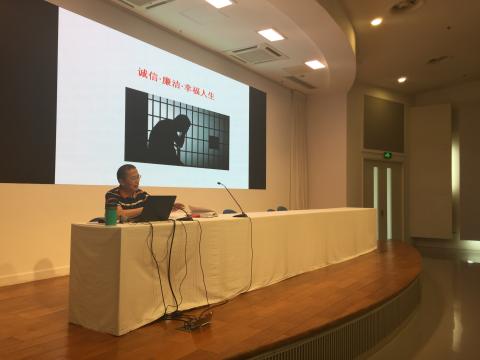 特别邀请学院纪检处李国俊副处长进行讲座。李老师以轻松愉悦的开场问候拉近了与同学们的距离,并以一些从古到今的典型反腐案件作为切入点,引出了整场讲座的主题——诚信、廉洁、幸福人生。在详细分析典型的反腐案件的过程中,李老师引经据典,每一句话无不渗透着大学生应该为人诚实、与人友善、带头廉洁的思想。他语重心长地对同学们说:“不要说廉洁与大学生无关,殊不知千里之堤毁于蚁穴,只有认识到腐败的危害性,才能具有警觉意识,从而加入到开展大学生廉洁诚信教育的队伍中来。”
