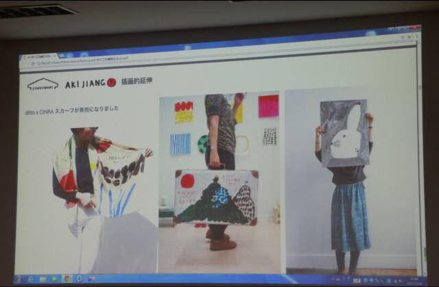 在接下来的环节中,她仔细地与同学们介绍了日本两个有名的插画师。一位是高桥高谷的插画师,他的画以动物为主,充满了童趣,大多数作品都表达了他对生活的热爱与体会,大多都是以手绘的形式表现,虽然他并非是专业的,但他艺术品位很孤僻,形成了自己独特的风格,是一个跨界的艺术家。他与许多品牌合作,例如芬兰家具。