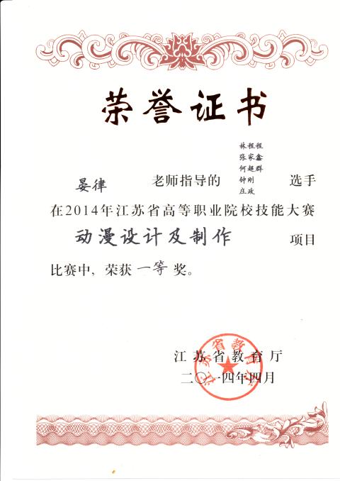 635288.com多位同学荣获江苏省高等职业院校技能大赛动漫设计及制作项目一等奖