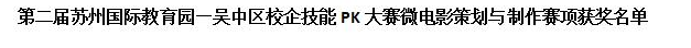 我校学生在第二届苏州国际教育园一吴中区校企技能PK大赛微电影策划与制作比赛荣获二等奖