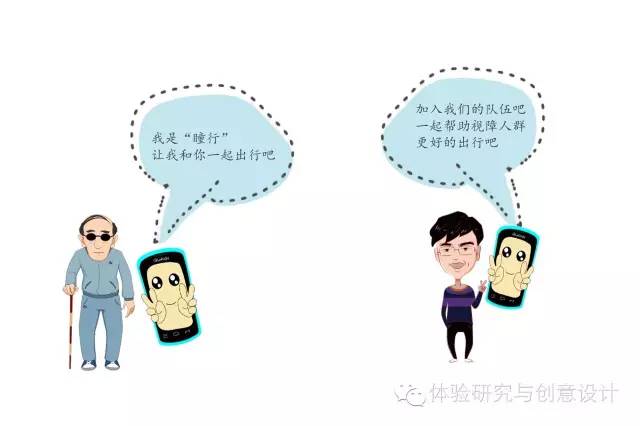 产品“瞳行”以视障人群出行为切入点,旨在通过完善他们出行的体验,从而使得盲人可以在移动端的帮助下完成独立或半独立的短途出行,这种独立或半独立出行行为不但拓宽了盲人生活的可能性,并且也在某种程度上帮助其自身价值及自我认同感得到提升。