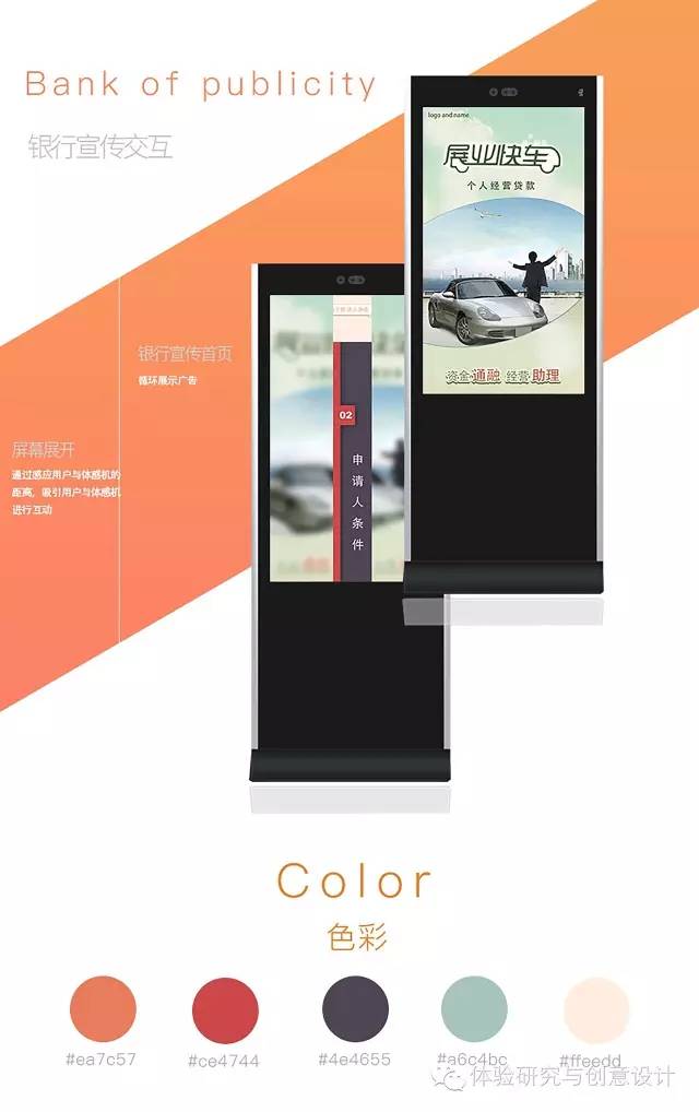 银行宣传体感机,是一款人们在银行业务大厅排队等待情境下的体感交互产品。经调研发现对于银行推出的相关优惠和产品推销活动,传统媒体宣传行形式转化率低。同时,大多数客户在等待办理业务时,虽然无所事事,却仍然不会过多关注宣传架上摆放的宣传页的内容。因此,本产品利用了排队等待的碎片时间,设计了银行特定场景下使用的体感交互模式,同时也能促进转化率的提高。