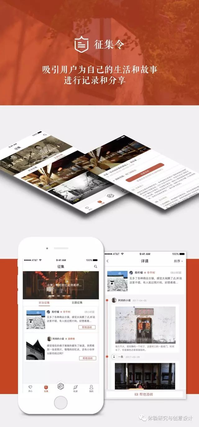“城事”以苏州人(居民)为核心用户,通过基于地理位置的“兴趣圈子”,基于各类主题的来自官方、商家和个人的“征集令”,并利用弱社交的组织方式,来吸引和帮助人们把自己的生活片段和故事进行记录和分享。从而,在“轨迹”中,人们能够体验到因变迁而产生的怀旧,因离开而带来的思念,因成长而孕育的家庭依赖等情感。个人为自己的生活轨迹“添砖”,因而形成自己的生活图景。个人为城市的发展和历史记录“添砖”,因而汇聚成苏州城市的发展图景。