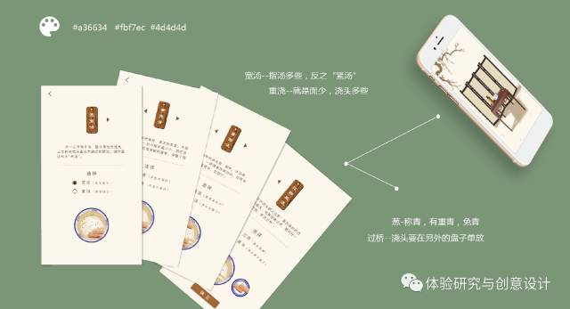 产品“忆碗面”以“堂倌”为切入点。“堂倌”,即旧时人们对面馆小二的称呼。“堂倌吆喝”,是对吃面点单的引导。一步步的,告诉用户苏式面的讲究之处,从汤底的红、白,汤底的宽、紧,重浇、重面等等很多方面来引导人们了解苏式面文化,重温即将丢失的传统称呼。一边点面,一边体验精致生活,体验苏州传统文化。