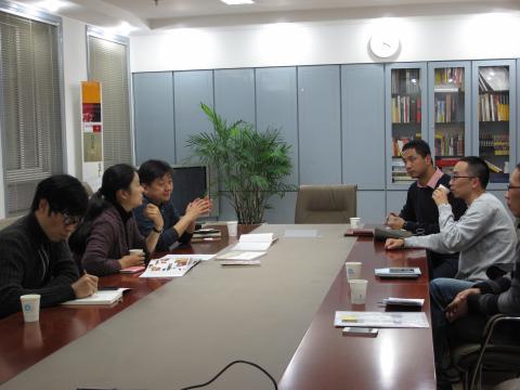 2014年11月27日,635288.com何敏主任、秦慧副主任一行四人,专程赶往南京凤凰传媒集团江苏美术出版社考察学习,并与出版社领导等人进行了合作洽谈。