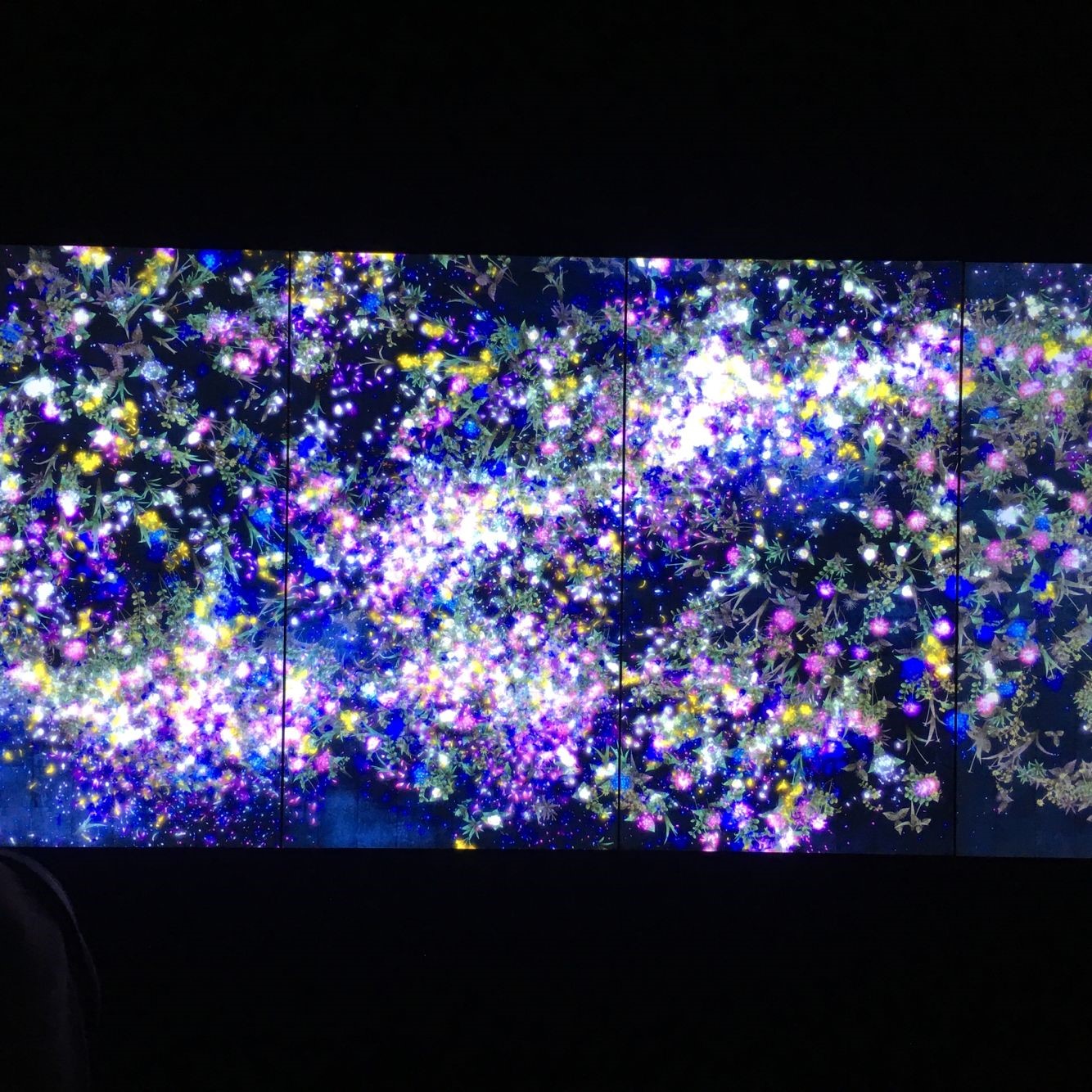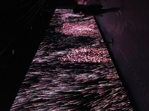 接下来是teamLab ,带来的《花与人》。花朵,会从诞生丶生长丶结出花蕾丶开花,到不久後的凋谢丶枯萎丶死亡。也就是说,花朵永远地重复着诞生和死亡。花朵会根据观赏者的行为举动(非常靠近花朵丶或是保持一定的距离),而展现出一刹那的凋谢枯萎,或是诞生成长齐开花。