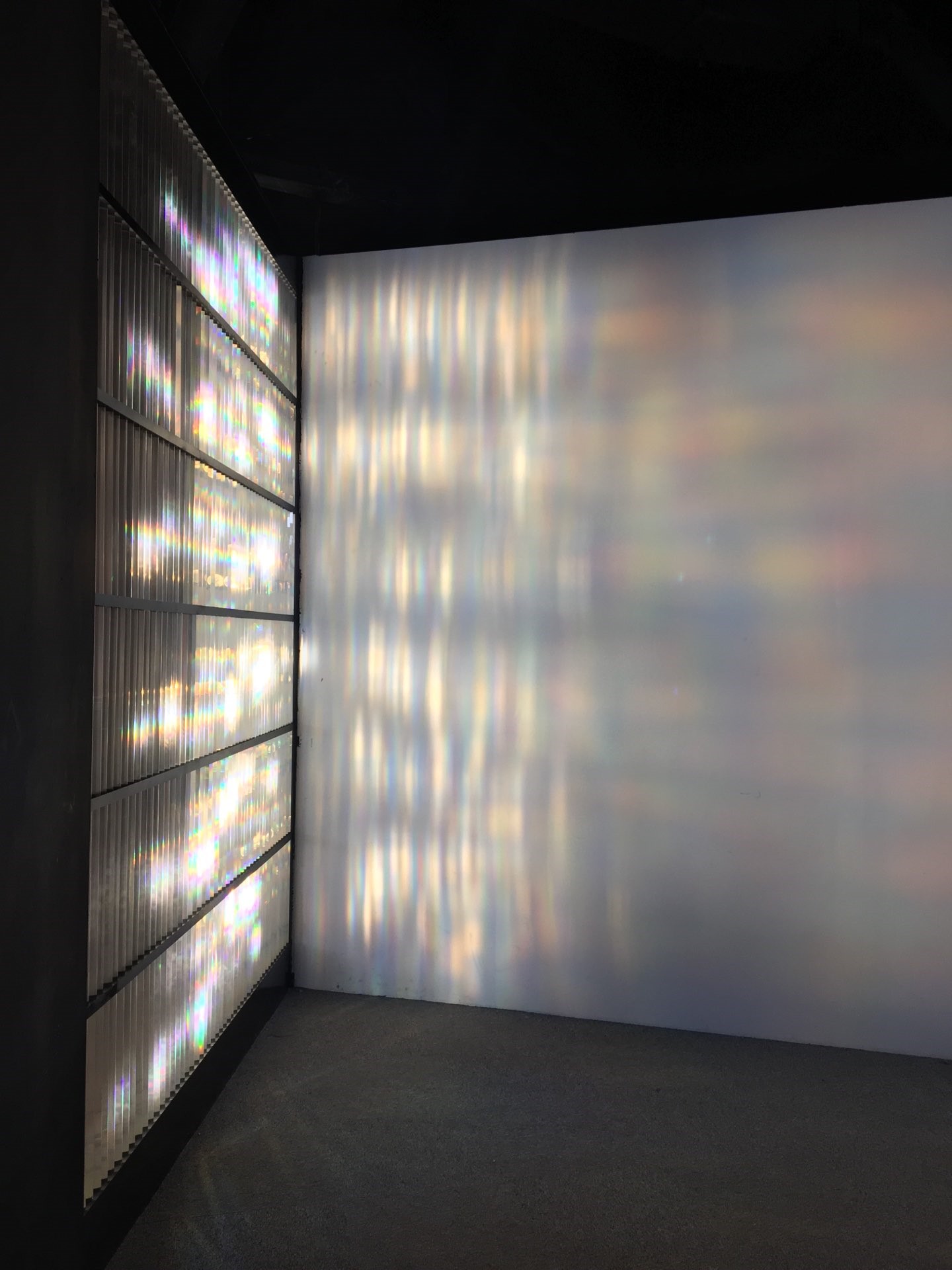 室外的日光穿透细线之间的空隙,造成彩虹般的视觉冲击,展现一种美好的梦境。