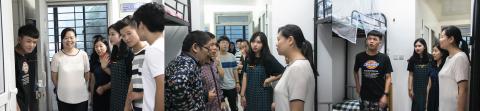 9日晚上5点,马华书记和17级辅导员洪小英、学生会、班级助理前往新生宿舍进行了走访慰问。