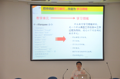 汪老师的教改实践将传统的“满堂灌”分解为“课程对接岗位、教材对接技能”的教育内容,既创新了教育内容,又改变了教学模式,达到了培养模式的转变,而这个转变恰恰是国家实施中等职业教育改革的发展方向。汪老师还举例介绍了传统课程如何转变成新课程,学员们纷纷表示汪老师的课贴近大家的工作实际,操作性强,可模仿、易学习。