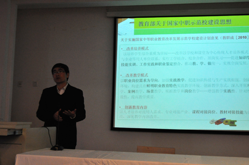 2012年12月11日上午,由继续教育处组织的2011中职国培学员“教学设计与研究论坛”如期举行。参加论坛的学员是由各承办系和学员积极推荐产生的,参加交流的学员都进行了认真的准备。黄海副院长出席论坛,特聘请科研处、学报编辑部、教务处及质控处的领导担任本次论坛评委。论坛由刘玉梅处长主持。