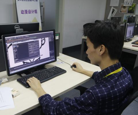 此次动漫设计组比赛的内容主要是参赛者们根据现场所给材料(一男一女的儿童形象),一名参赛者负责前期创意设计、一名负责后期三维角色建模,从而现场进行头脑风暴,设计创作。比赛现场中,整个赛场被一种紧张的氛围笼罩,参赛者们在模具只给正面照的情况下尽情发挥自己的奇思妙想以及精湛的软件绘画技巧,不管是从前期创意勾勒线条到后期模型制作上色,参赛者们都一丝不苟,努力创作。他们的作品丰富多样、创意独特、构思新颖。