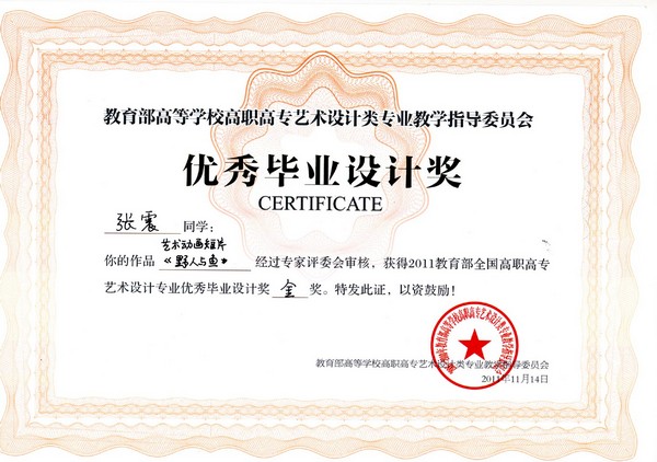 2011年张震作品《野人与鱼》荣获教育部高职高专艺术设计教学指导委员会第六届优秀毕业设计作品展金奖