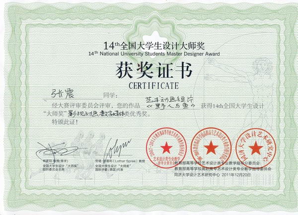 2012年张震作品《野人与鱼》荣获第14届全国大学生设计大师奖