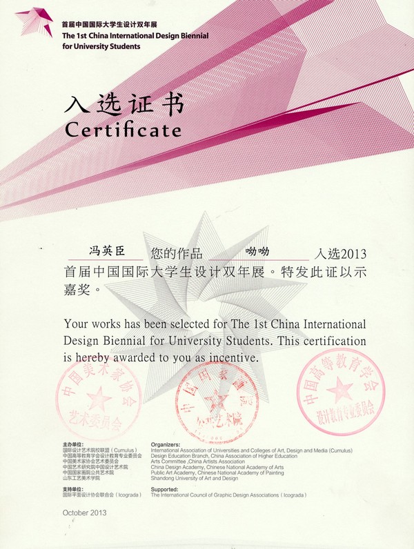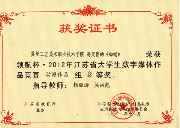 2012年冯英臣《呦呦》获得领航杯江苏省大学生数字媒体作品竞赛三等奖